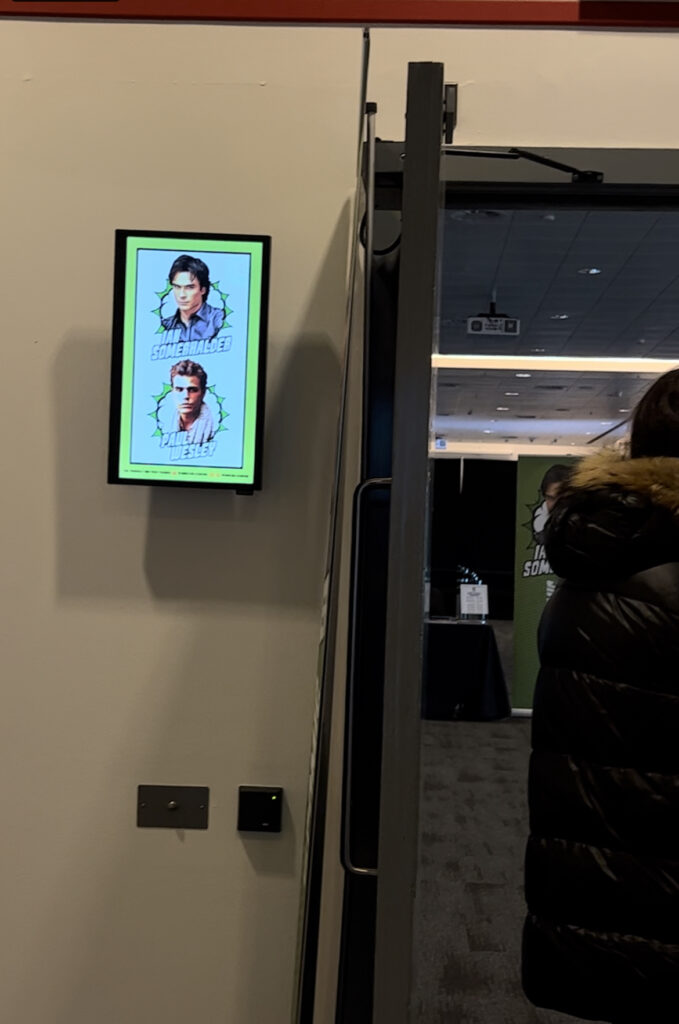 On Sunday evening, I had an argument with a security guard. After I retrieved my coat from the cloakroom, he wouldn’t stop yelling at me that I couldn’t return to the other building. I explained to him that I needed to, because Ian was still doing autographs. It was useless. He kept yelling and even refused to call a staff member to help solve this.