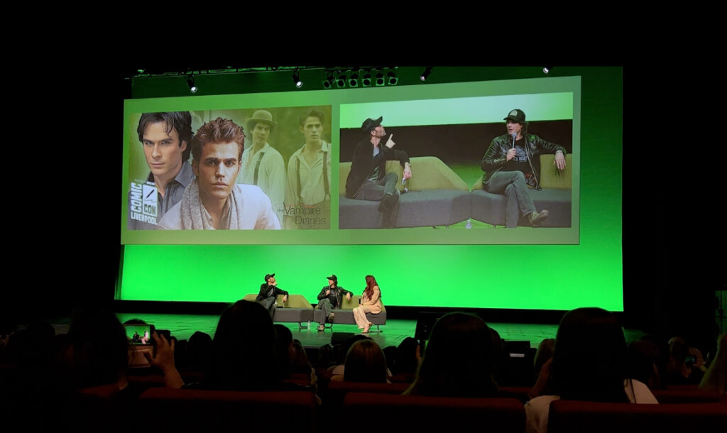 After two postponements on 2021 and May this year, Ian Somerhalder and Paul Wesley attended Comic Con Liverpool last weekend at Liverpool Exhibition Centre by the Docks. Alongside them, other vampire fellows came: Sebastian Roché (Mikael Mikaelson in The Originals), Riley Voelkel (Freya Mikaelson in The Originals), Nathaniel Buzolic (Kol Mikaelson in The Originals) and Arielle Kebbel (Lexi in The Vampire Diaries).