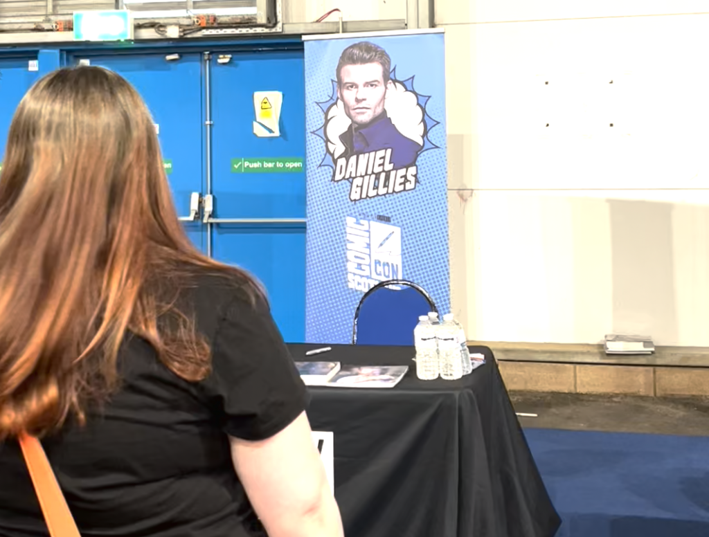 After that, we went to Daniel Gillies’ photo booth. The hall was pretty cold, but we didn’t mind. Daniel was all smiley and kind with fans, who absolutely enjoyed meeting him and taking all sorts of funny and dorky photos. I hadn’t seen him since last December, and by then plexiglass was still on, so when we reunited, we could finally hug and properly catch up. It was a pretty amazing feeling.